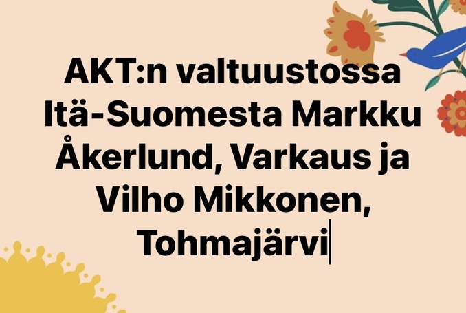 Toivon myös kaikille AKT:n osastoille reipasta tulevaa, tulevaisuuteen tähtäävää yhdistysten toimintavuotta !