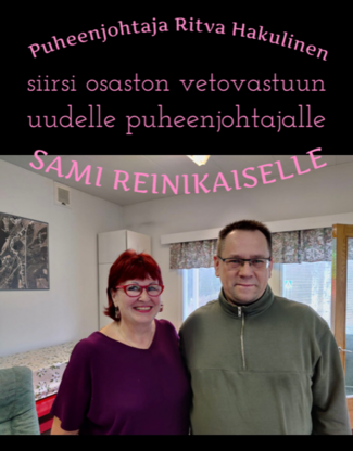 Kiitos kaikille kannustuksesta, hyvästä yhteistyöstä mukanaolostanne ja tuestanne näinä vuosina! Pienessä osastossamme on ollut ja on nytkin hyvä yhteishenki ja yhdessä tekemisen meininki – näillä eväillä on turvallista ja helppo jatkaa toimintaa. Kiitän lämpimästi kaikkia niitä henkilöitä ja tahoja, joiden kanssa olen saanut tehdä yhteistyötä tämän hienon yhdistystoiminnan parissa.
